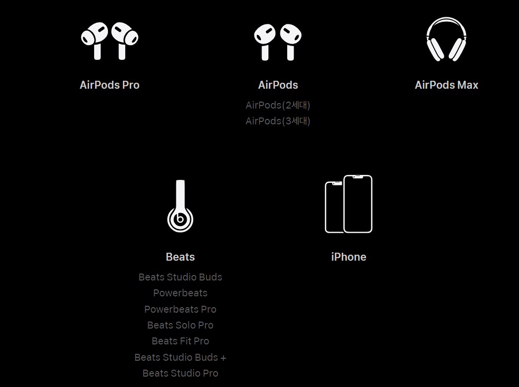 해당 X : AirPods (1세대), Beats Solo3 Wireless, Beats Studio3 Wireless, Beats EP 및 Beats Flex