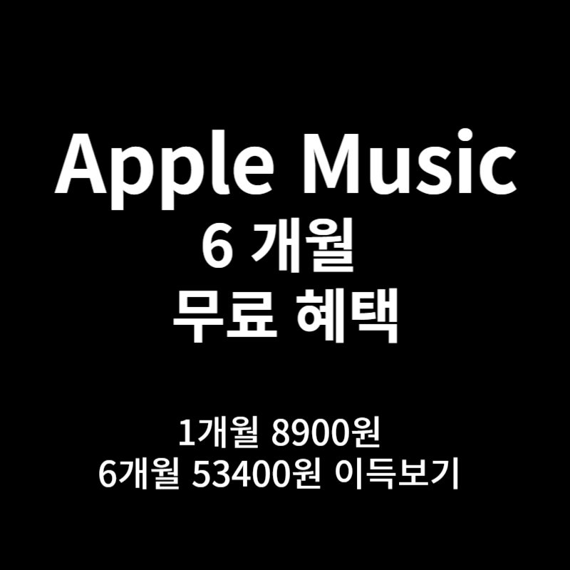 애플뮤직에서 1억 곡 이상을 무료로 체험할 수 있는 이벤트를 진행하고 있습니다. 1개월에 8900원인데, 무료 6개월이면 53400원의 이득을 볼 수 있는 이런 이벤트를 놓칠 순 없죠. 6개월 전에 손쉽게 해지도 가능하니 이번 기회를 이용해 보세요
